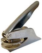 Prägezange an der oberen oder unteren Seite vom Papier angesetzt wird.